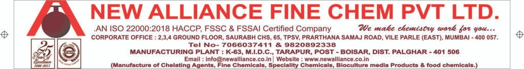 New Alliance Fine Chem Pvt. Ltd. is the leading manufacturer of premium quality of Chelating Agents, Protein Hydrolysates, Fine Chemical (including Mineral & Metal Salts) & Specialty Chemicals, headquartered in the Mumbai, which is the financial capital of India. We are having two state of art manufacturing facilities in Tarapur MIDC, which is about 100 Km to the north of Mumbai. It is well accessible to the Airport & JNPT Sea Port.